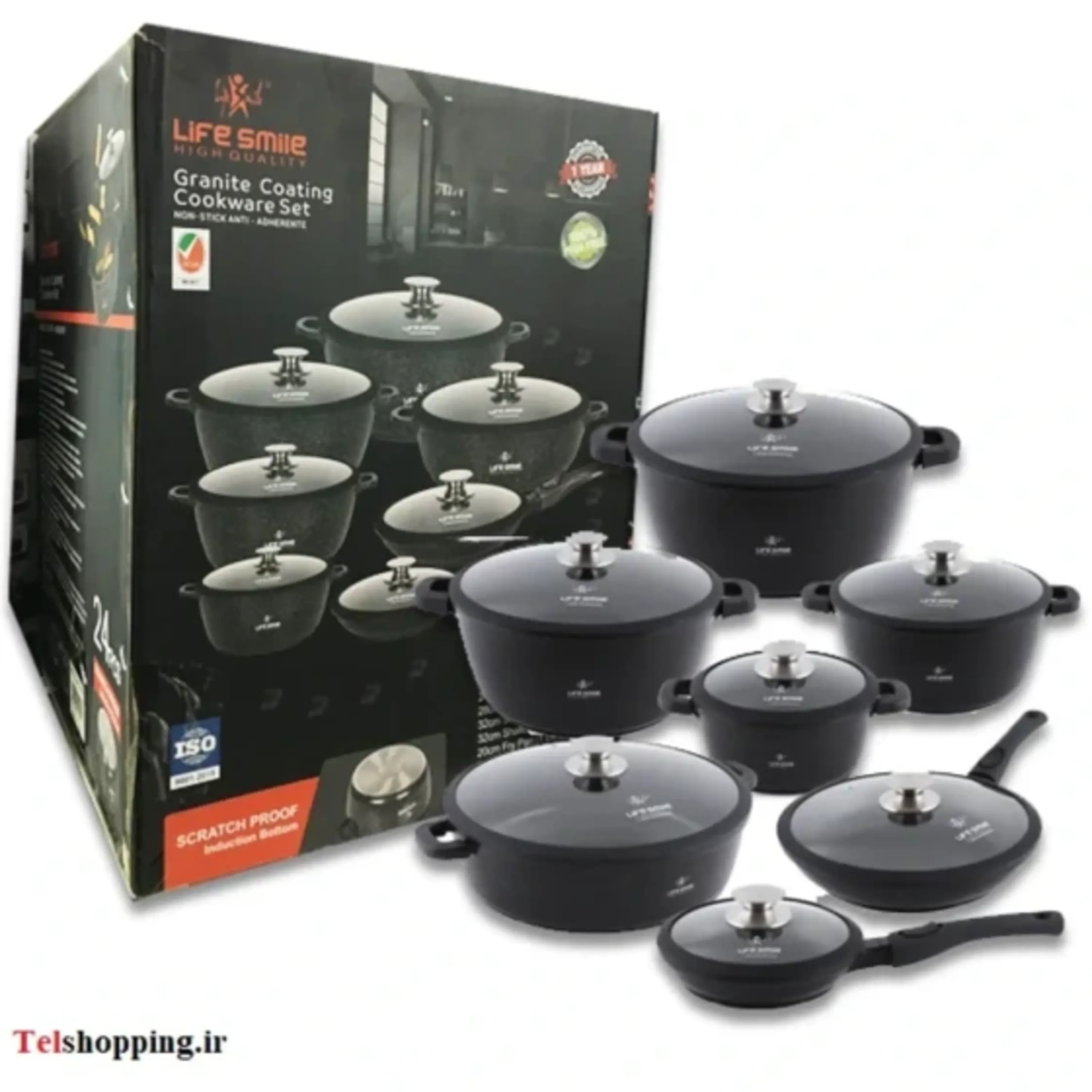 مجموعه ظروف آشپزی با کیفیت فوق العاده لایف اسمایل دارای بدنه آلومینیومی دایکاست ممتاز پوشش گرانیت نچسب بادوام درب های شیشه ای مقاوم با دریچه ...