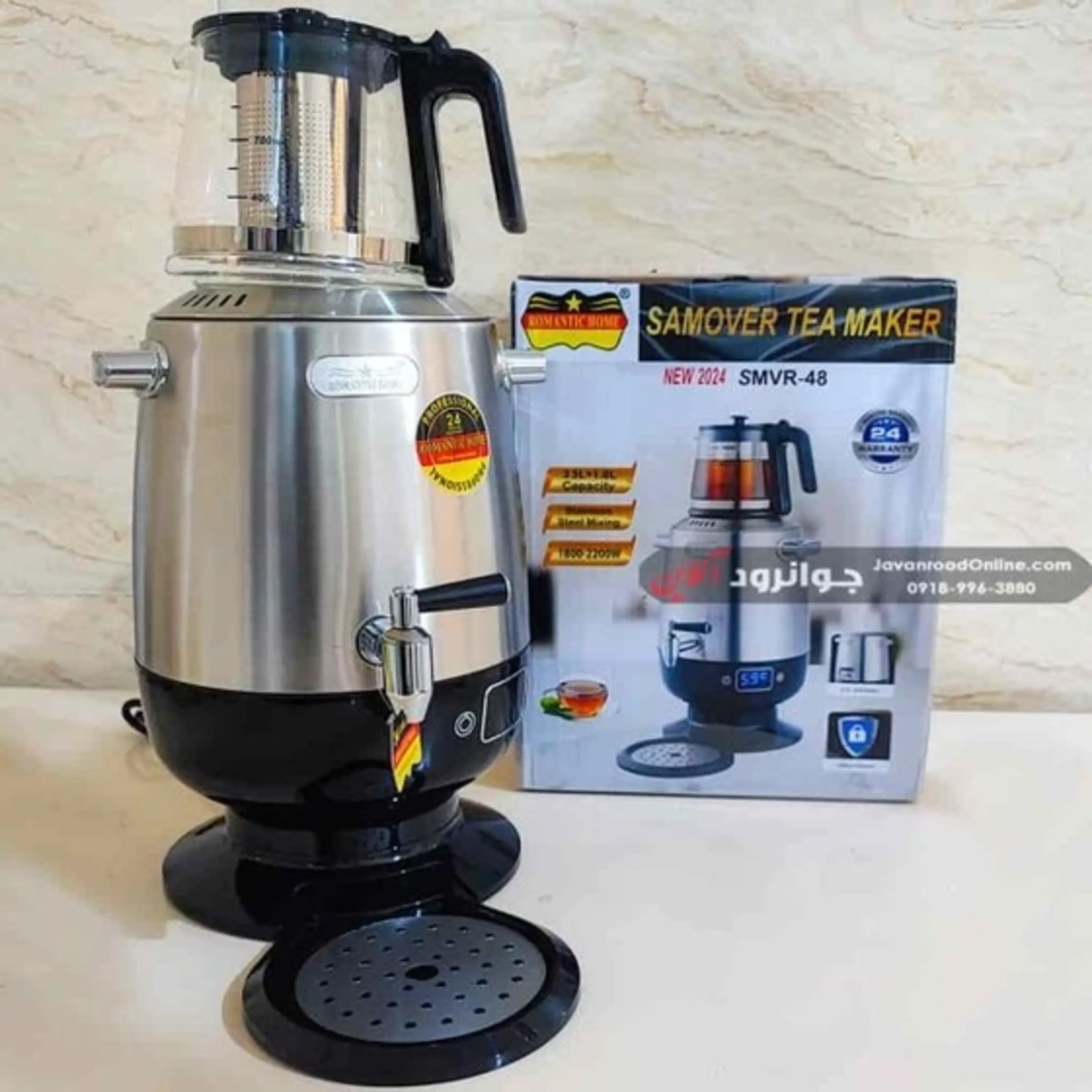 سماور برقی رومانتیک هوم اصلی کیفیت عالی. ظرفیت سماور 3/5 لیترتوان. ظرفیت قوری 1 لیتر. توان مصرفی 1800 وات و 2200 وات