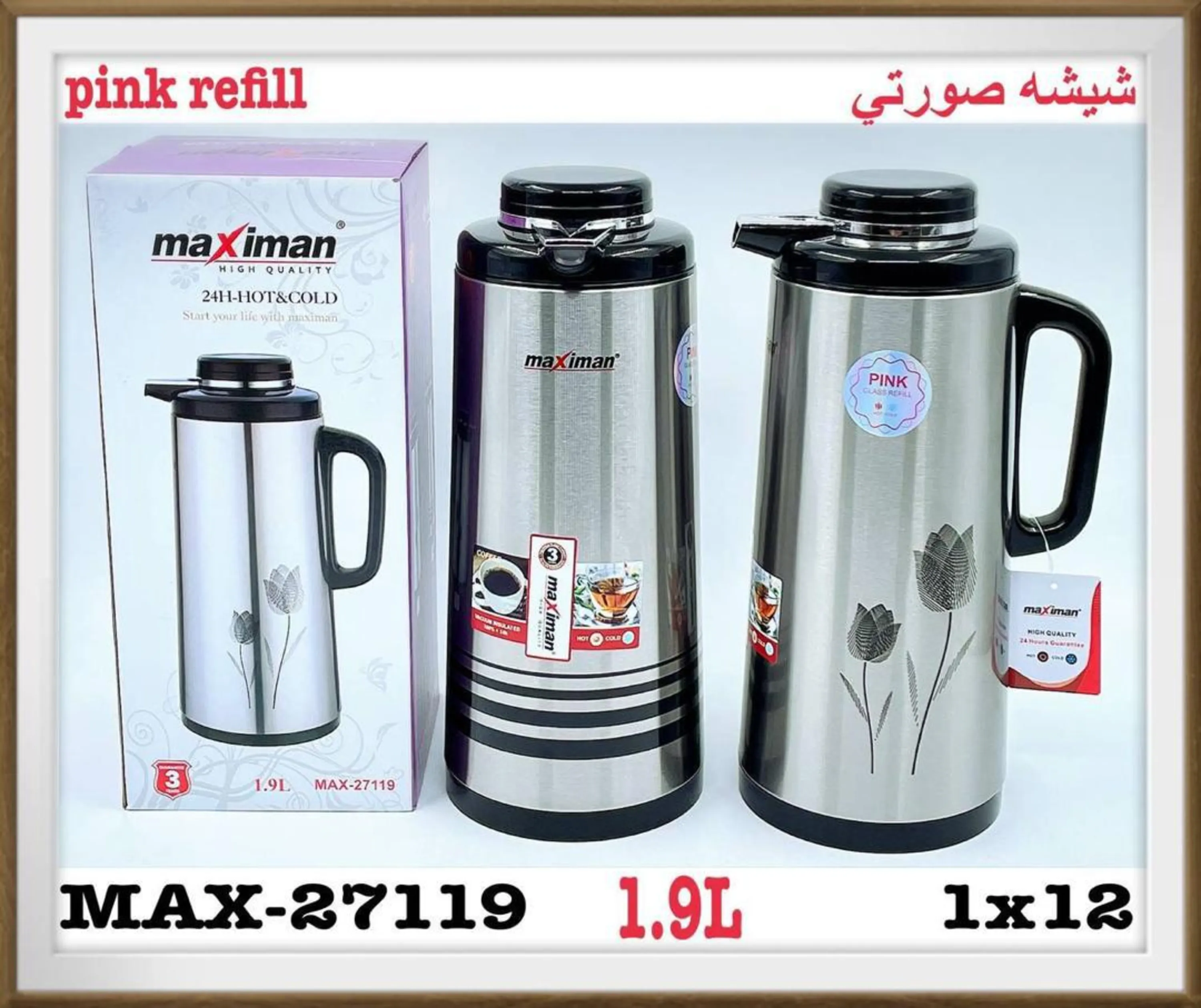 فلاسک 1/9 استیل شیشه قرمز ماکسیمان (اصلی)