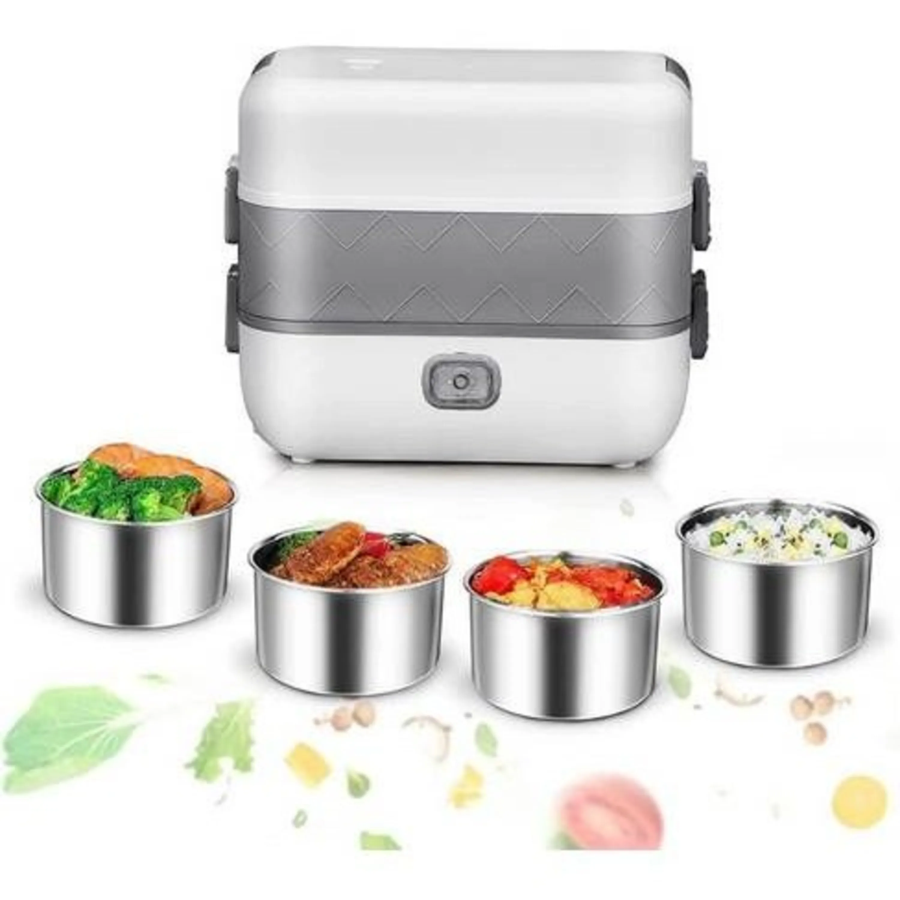 ظرف غذای برقی لانج باکس مدل LB-200W( دو طبقه ) 4 عددی کاسه استیل (اصل)