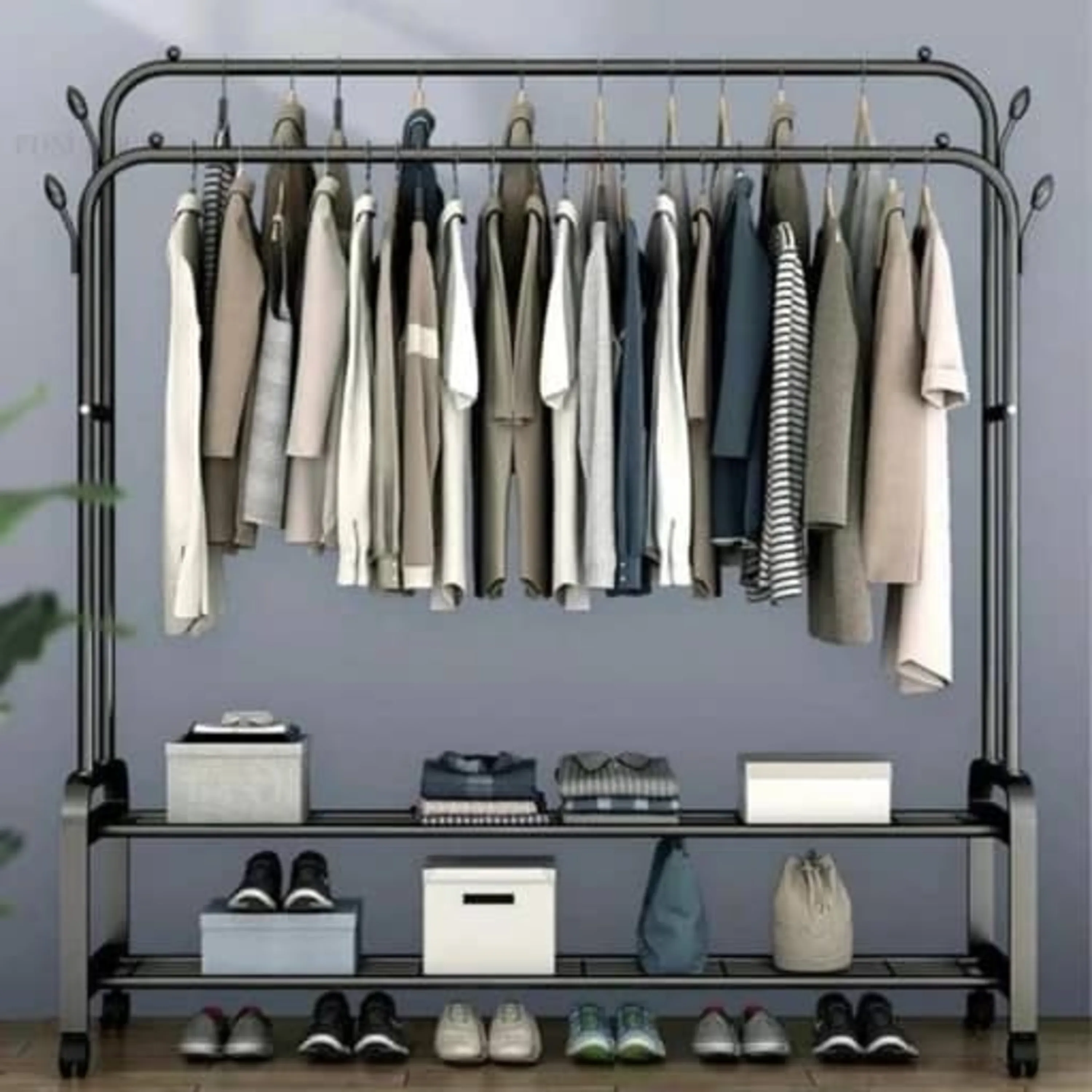 رگال لباس دوبل فلزی چرخ دار 2 طبقه - مشکی
